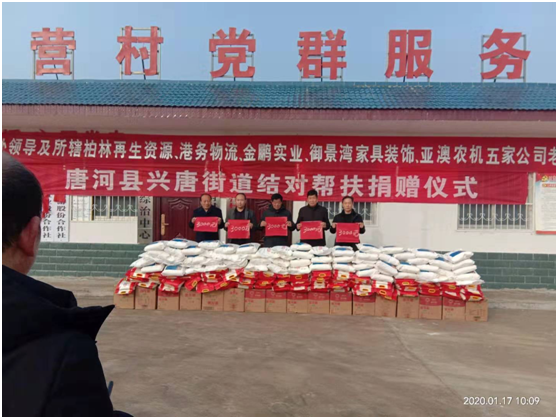 捐贈儀式上產(chǎn)業(yè)集聚區(qū)黨委書記劉清文、主任李國營代表興唐街道黨委、政府向五家企業(yè)的義舉表示感謝。他指出,以亞澳農(nóng)機為首的這五家公司,在完成自身企業(yè)負責包片貧困村脫貧的基礎(chǔ)上,還能再拿出現(xiàn)金3000元捐資扶貧,將自己的社會責任意識,由助力脫貧攻堅,走向現(xiàn)在回饋社會。代表著我縣企業(yè)經(jīng)營由起步走向成熟。他希望廣大困難群眾正確面對暫時的困難,樹立戰(zhàn)勝貧困、走出困境的信心和勇氣,發(fā)揚自力更生、艱苦奮斗的精神,不等不靠,在黨委、政府和社會各界的支持和幫助下,以自身的努力和實干來化解生產(chǎn)、生活中的各種困難,為構(gòu)建美麗和諧的新唐河作出自己的貢獻。