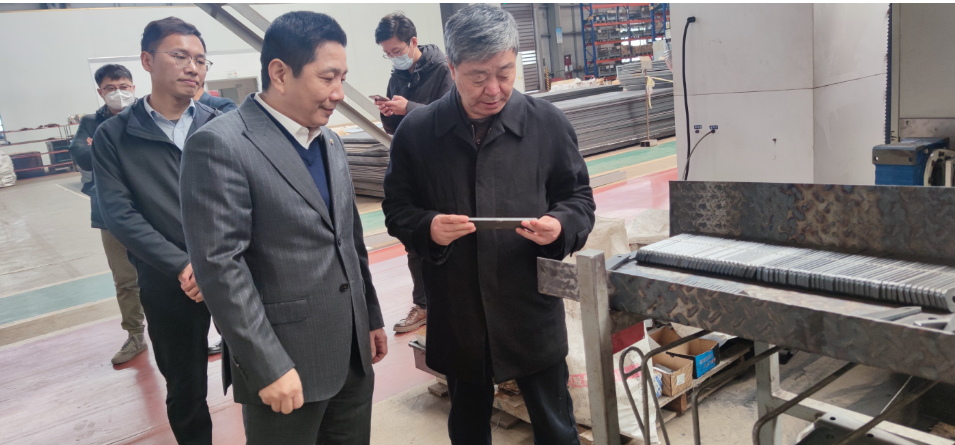 領(lǐng)導(dǎo)一行先后參觀了公司產(chǎn)品展廳、制造現(xiàn)場等區(qū)域,在總經(jīng)理的介紹下,領(lǐng)導(dǎo)們對公司產(chǎn)品智能制造過程、生產(chǎn)管理模式、綠色工廠體系發(fā)展、技術(shù)研發(fā)、知識產(chǎn)權(quán)等做了詳細(xì)了解,隨后進(jìn)行了會談。