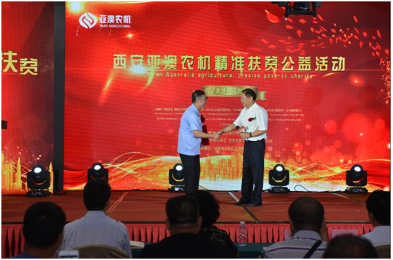 開機(jī)儀式上,中國農(nóng)機(jī)化協(xié)會還就“甘肅省蘭州市永登縣”精準(zhǔn)扶貧工作給予亞澳高度的認(rèn)可。永登縣團(tuán)莊村屬干旱貧困山區(qū),全村現(xiàn)有7個(gè)村民小組,421戶、1696人。近年來,幫扶單位先后捐贈了30多臺(套)特色農(nóng)機(jī)具,但仍缺少大中型農(nóng)機(jī)具,農(nóng)機(jī)化服務(wù)能力不足,不能滿足農(nóng)業(yè)生產(chǎn)需求。此次中國農(nóng)業(yè)機(jī)械化協(xié)會聯(lián)合亞澳公司等有關(guān)單位向團(tuán)莊村捐贈價(jià)值40多萬元農(nóng)業(yè)機(jī)械,必將對團(tuán)莊和周邊鄉(xiāng)村農(nóng)業(yè)和農(nóng)村經(jīng)濟(jì)發(fā)展、全面建設(shè)小康社會起到很大地推進(jìn)作用。