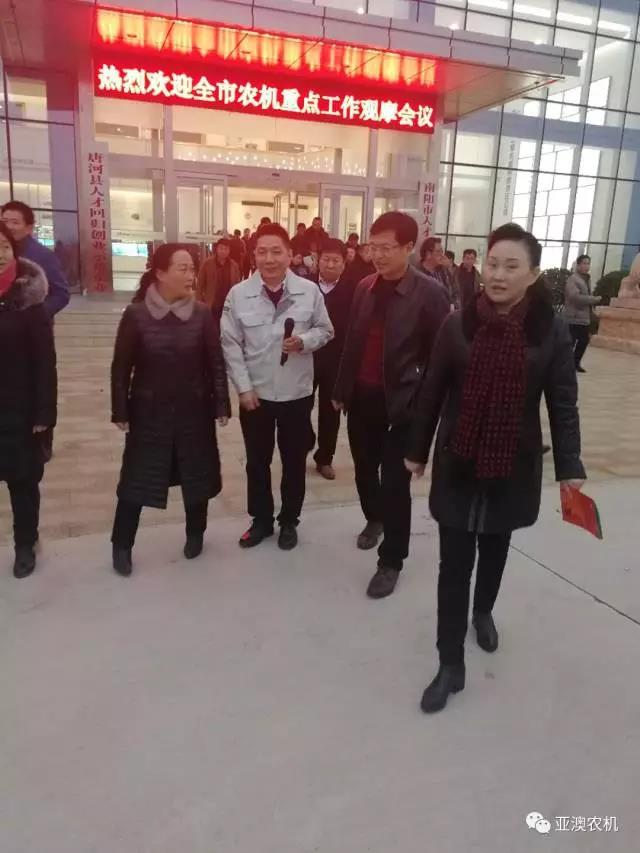 2017年12月13日,南陽(yáng)市農(nóng)機(jī)局劉勤局長(zhǎng)在縣政府馬俊宏副縣長(zhǎng)、縣農(nóng)機(jī)局張凌局長(zhǎng)陪同下帶領(lǐng)參加全市農(nóng)機(jī)重點(diǎn)工作的市、各縣農(nóng)機(jī)系統(tǒng)領(lǐng)導(dǎo)及各縣屬專業(yè)農(nóng)機(jī)合作社人員,來(lái)到亞澳農(nóng)機(jī)觀摩指導(dǎo)。