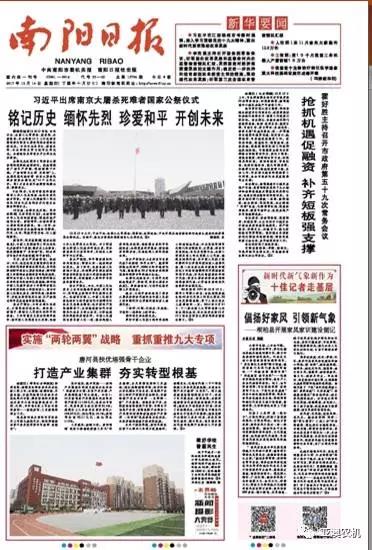 2017年 12月14日,南陽日報頭版報道唐河產業(yè)發(fā)展,我公司榜上有名。以下為報道全文。