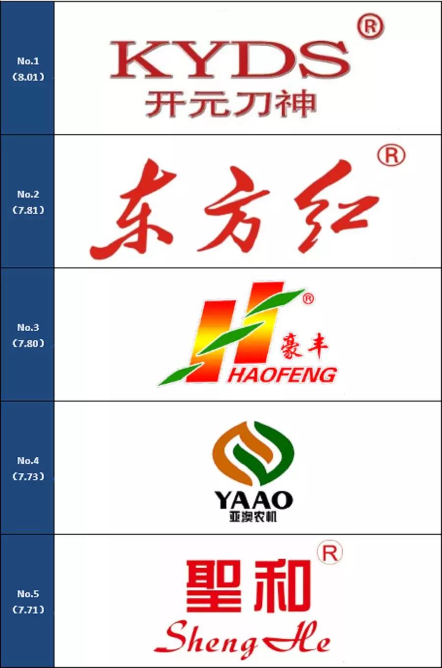 通過上面的一系列計算,入選旋耕機(jī)滿意品牌的是:開元刀神、豪豐、東方紅、亞澳、圣和。