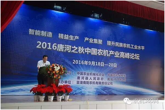 9月20日,由中國(guó)農(nóng)業(yè)機(jī)械化協(xié)會(huì)、《中國(guó)農(nóng)機(jī)化導(dǎo)報(bào)》、河南省唐河縣政府和南陽(yáng)市農(nóng)機(jī)局共同主辦,亞澳南陽(yáng)農(nóng)機(jī)有限責(zé)任公司承辦的2016唐河之秋中國(guó)農(nóng)機(jī)產(chǎn)業(yè)高峰論壇在河南省唐河縣舉行。全國(guó)各地農(nóng)機(jī)生產(chǎn)企業(yè)、當(dāng)?shù)亟?jīng)銷(xiāo)商以及媒體代表共200多人參加了此次論壇。